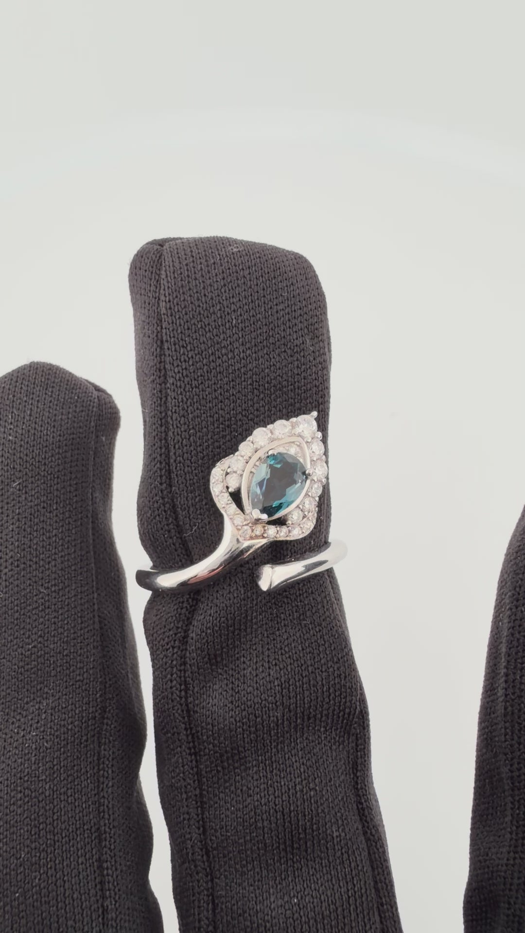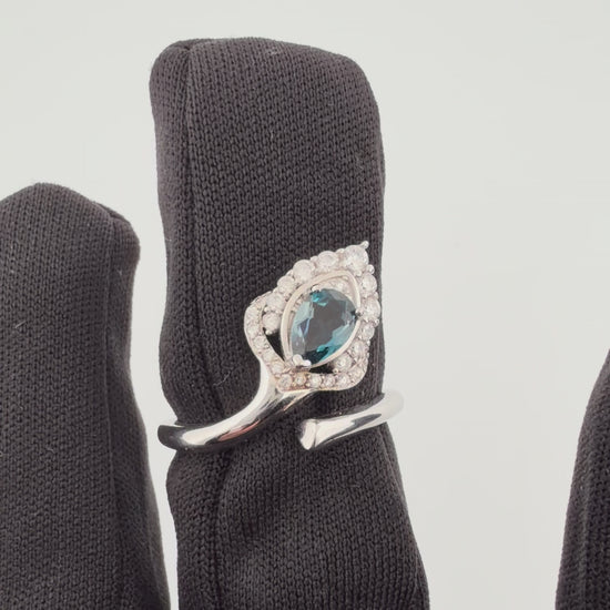 A vision of deep ocean elegance, the Midnight Tide Ring features a mesmerizing London Blue Topaz in a graceful pear-cut silhouette, glowing with rich navy-blue brilliance and subtle indigo depth. Framed by a delicate zircon halo and set in luminous sterling silver, this flowing wrap design creates a sense of movement, light, and modern romance.